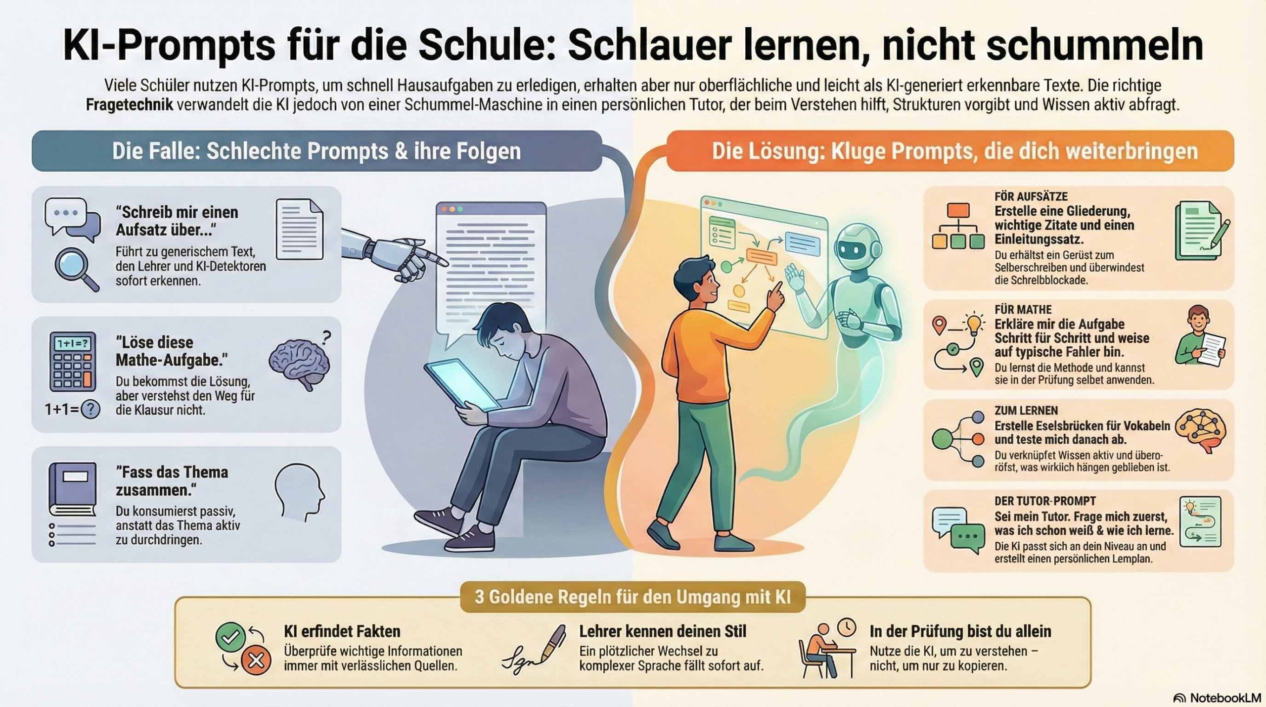 Die gute Nachricht: Es gibt bessere Wege. Prompts, die tatsächlich funktionieren. Die dir Zeit sparen, ohne dass du komplett auffliegst oder dein Gehirn verkümmert. Hier sind sie.