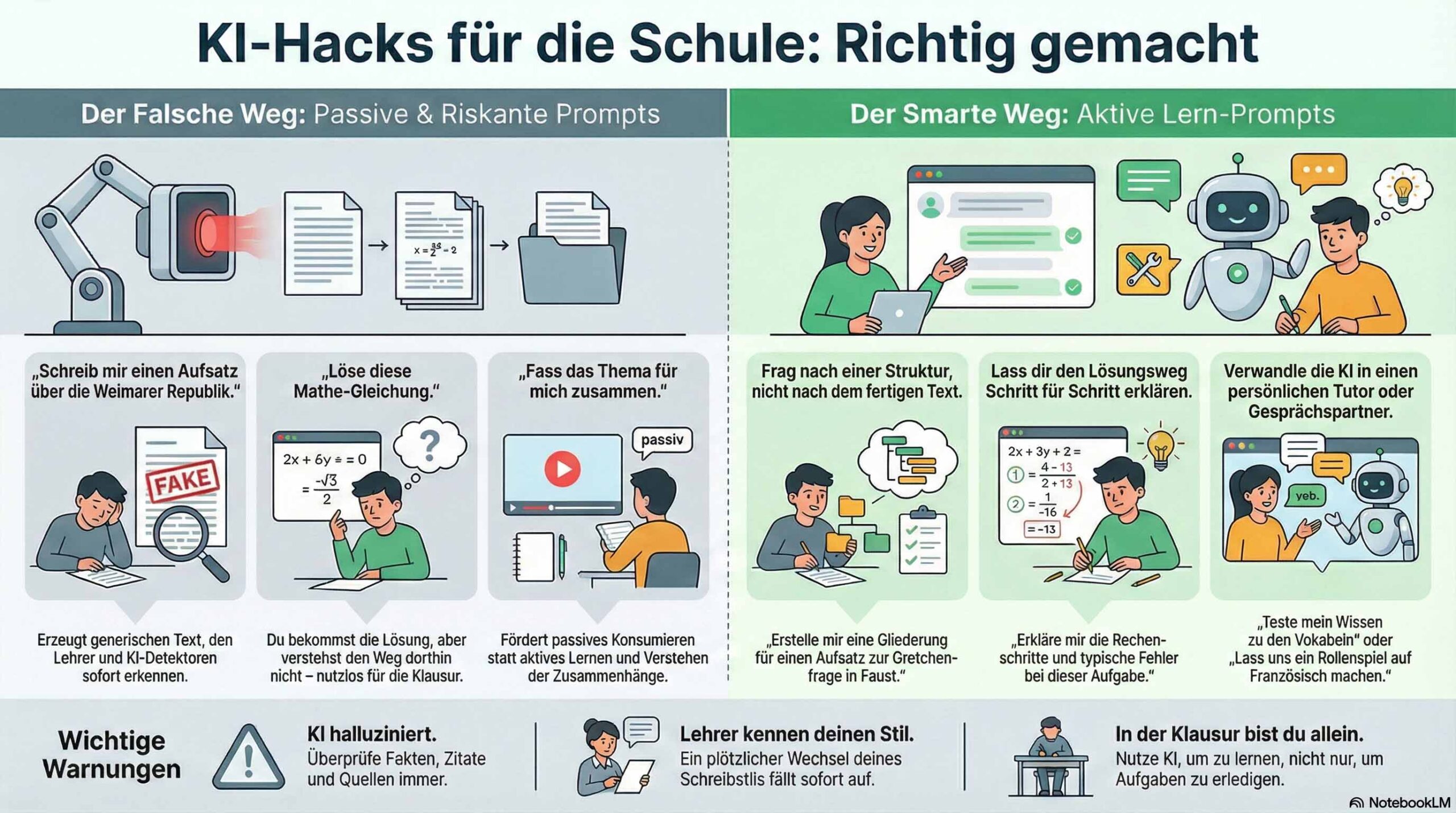 Du öffnest ChatGPT. Tippst: »Schreibe einen Aufsatz über die Weimarer Republik.« Drei Minuten später hast du zwei Seiten Text. Problem gelöst?