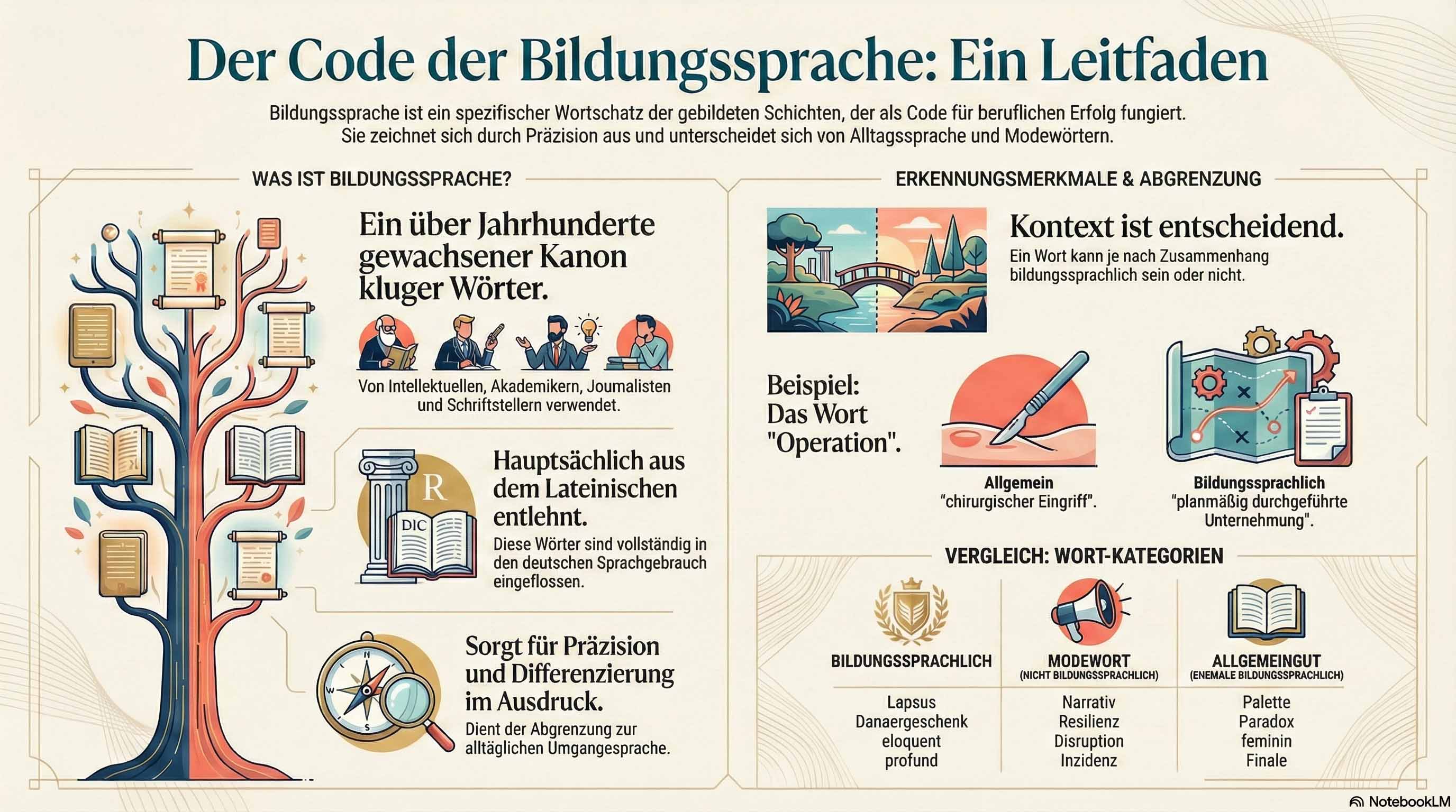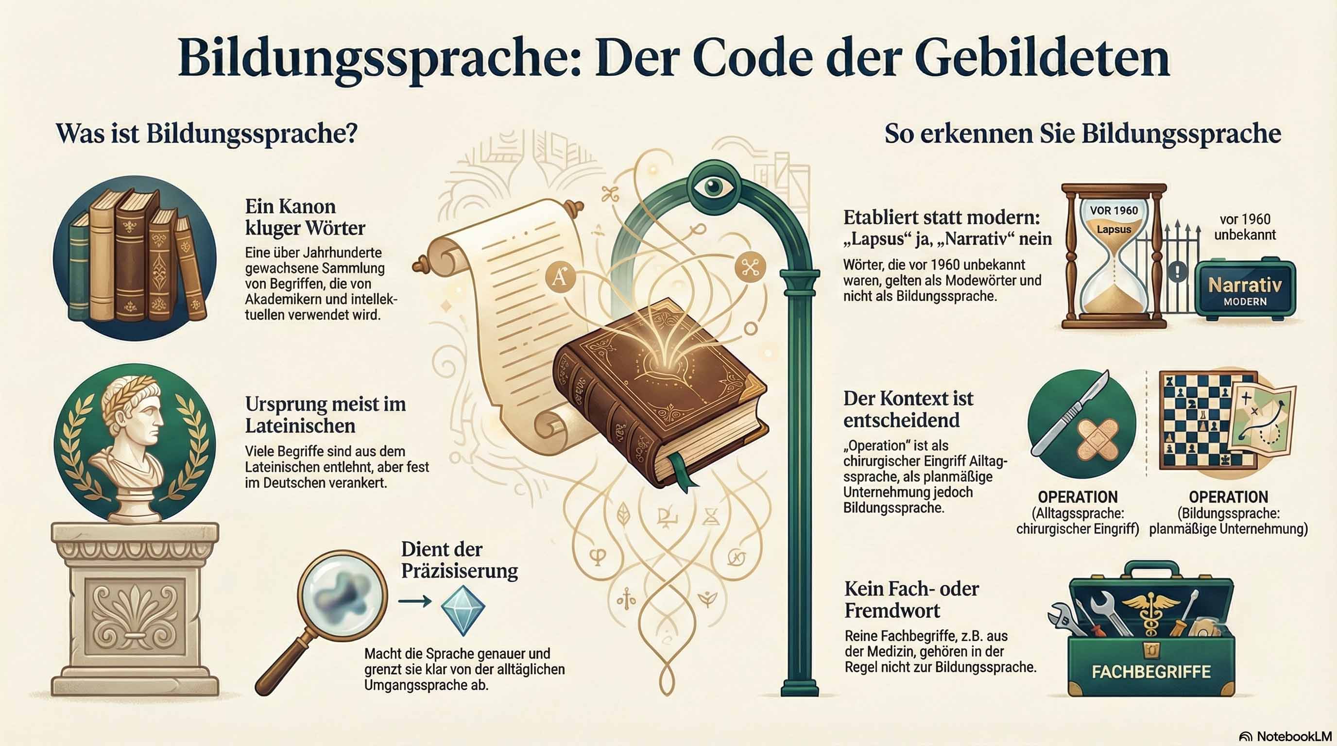 Wenn man will, kann man das als einen Code bezeichnen. Nur wer diese Begriffe kennt, sie korrekt verwendet und versteht, gehört dazu. Das kann Auswirkungen auf berufliche Chancen haben und mitbestimmend sein für die Position, die man sich im Leben schaffen will.